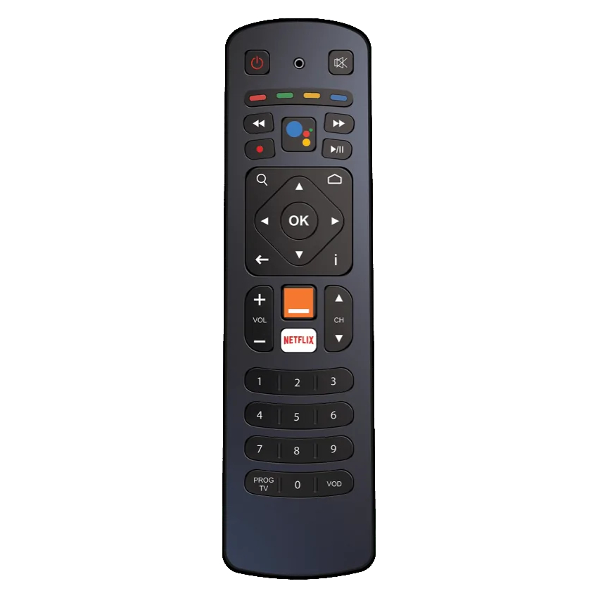 Náhradní ovladač s funkcí Bluetooth pro dekodér Orange TV 4K Stream. Umožňuje bezdrátovou komunikaci s dekodérem, plnou kontrolu nad funkcemi smart TV a navigaci po aplikacích.