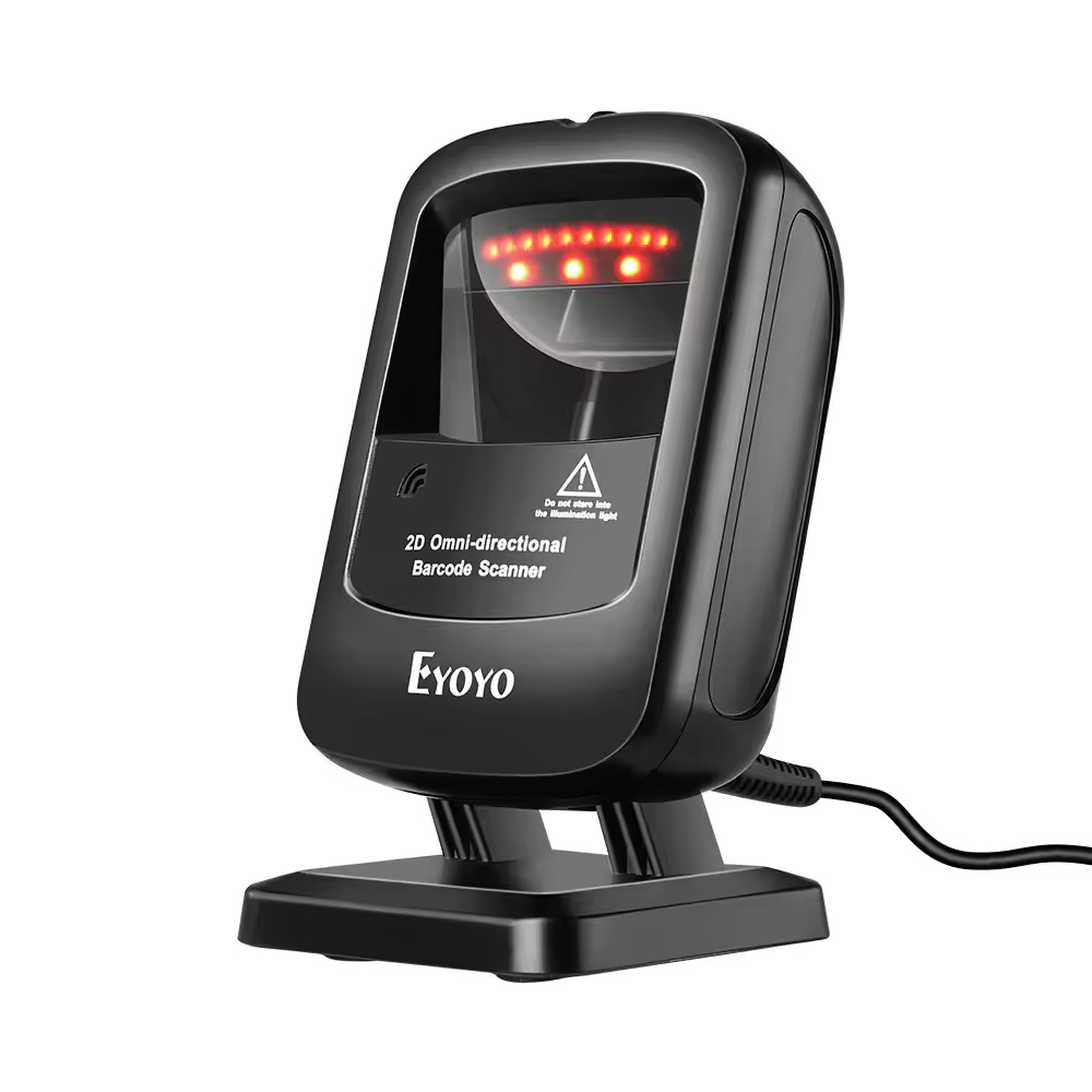 Stacionární skener čárových kódů 2D EYOYO EY-2200. Automatická detekce a skenování kódů. Kompatibilní se systémy Windows, Mac a Linux. Ideální pro pokladny a prodejní místa.