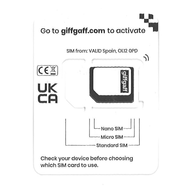 - 1× Karta SIM giffgaff UK