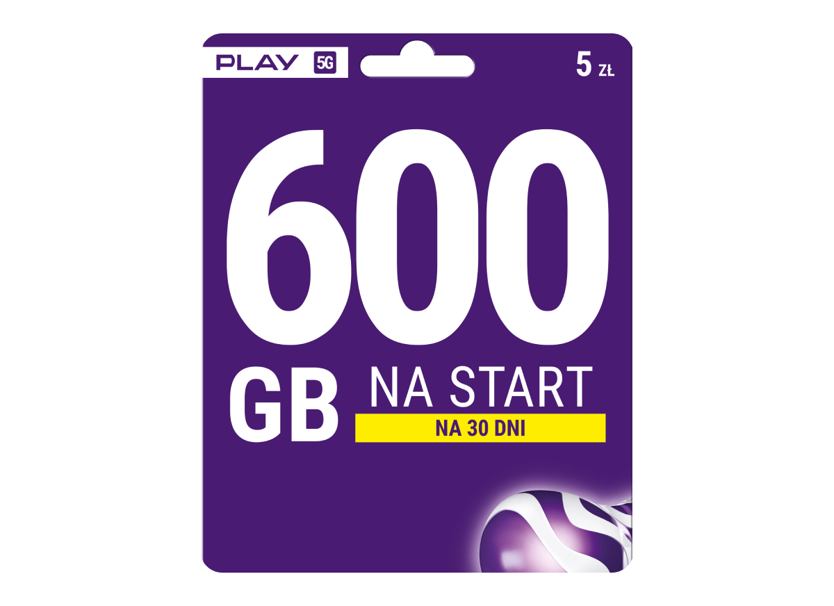 Startovní karta Play s balíčkem až 600 GB mobilního internetu na začátek. Platnost balíčku 30 dní. Ideální řešení pro osoby potřebující velké množství internetu bez smluvních závazků.